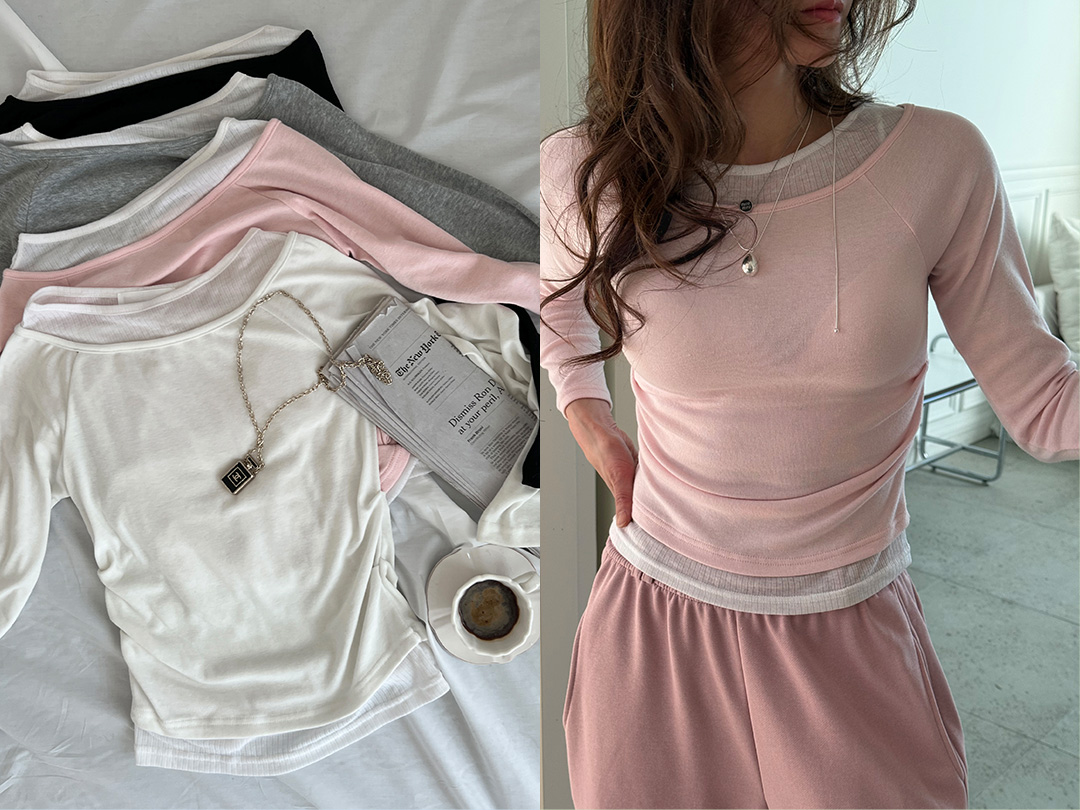 이다벨 레이어드배색긴팔티